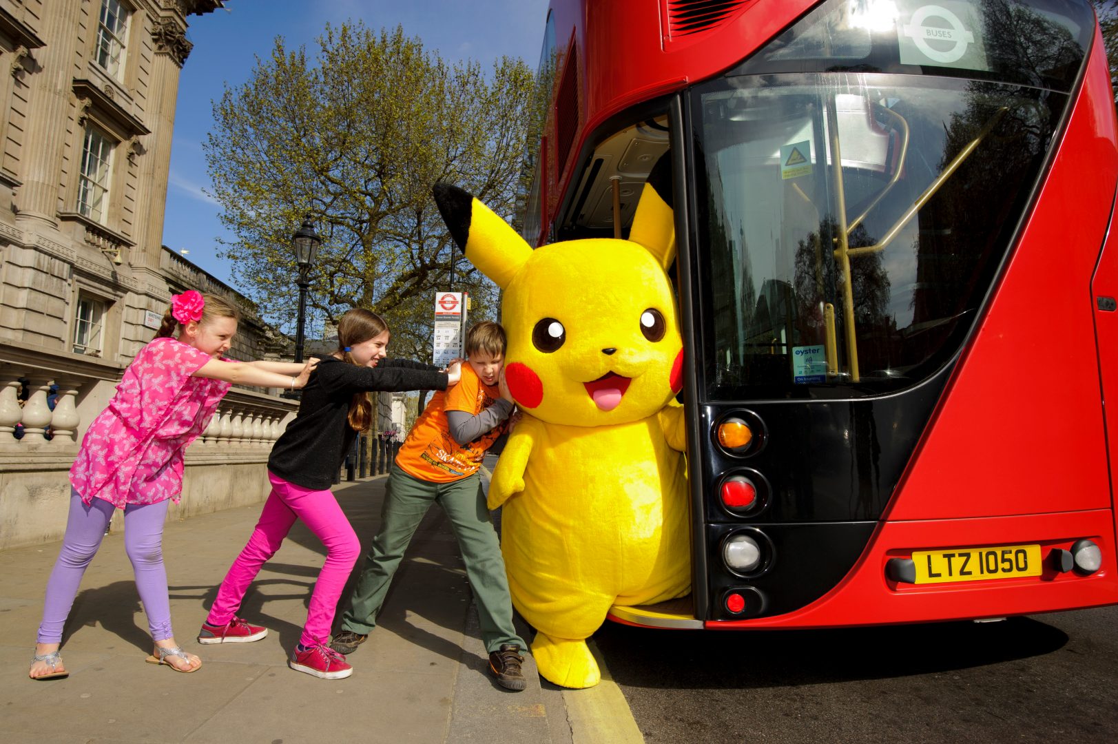 El transporte público es el principal medio de transporte en Londres. Este año precisamente se celebra el Año del Autobús, por lo que Pikachu, se ha involucrado activamente en la promoción del transporte público.