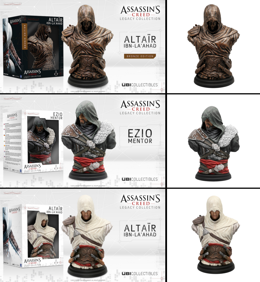 Ubisoft reveló nuevas adiciones a la Legacy Collection de bustos, las cuales incluyen a los personajes más carismáticos de la saga Assassin’s Creed. Una nueva figura, denominada “Leap of Faith”, también estará disponible desde ahora en la Uplay Shop.