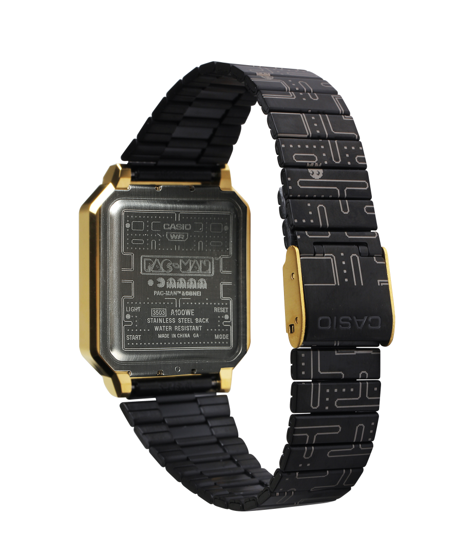Casio Computer Co., Ltd. anunció el lanzamiento del Casio Vintage A100WEPC, un modelo de colaboración con el icónico y popular videojuego PAC-MAN. El nuevo A100WEPC se basa en la reciente reedición del reloj digital F-100, lanzado originalmente en 1978. Esta nueva pieza llegará a México en el último trimestre del año.