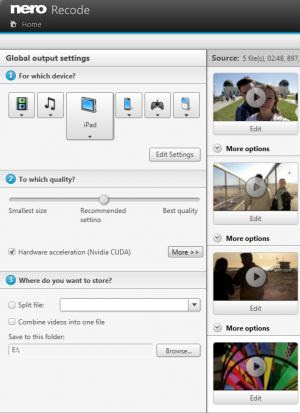 – Nero Recode: además de soportar múltiples dispositivos de nueva generación, Recode incluye lo último en tecnologías aceleradas por hardware (Intel® Quick Sync Video, NVIDIA CUDA, ATI/AMD Stream).
