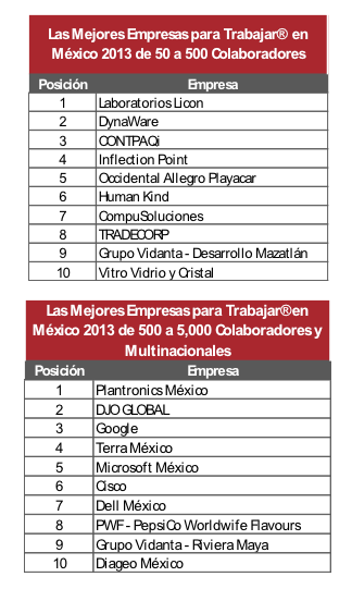 great place to workCon la participación de 460 empresas, que integran alrededor de 500 mil colaboradores, Great Place to Work da a conocer la edición 2013 del ranking de Las Mejores Empresas para Trabajar en México.