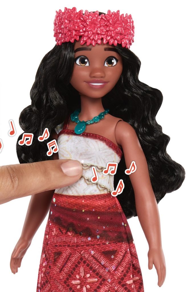 ·       Muñeca Musical de Disney Moana 2: ¡La muñeca Moana Musical está lista para responder al llamado del océano con valentía! Canta la canción original We’re Back en cuatro idiomas diferentes.