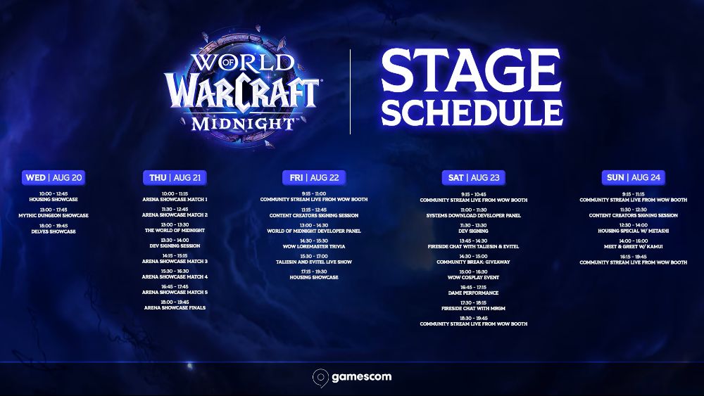 Los asistentes a la gamescom 2025 conocerán en más detalle las novedades de Midnight de la mano de las personas a cargo del juego. Durante la gamescom 2025, habrá dos paneles de desarrolladores dedicados a ahondar en las funcionalidades y el mundo de Midnight en directo desde el escenario de la comunidad de World of Warcraft: